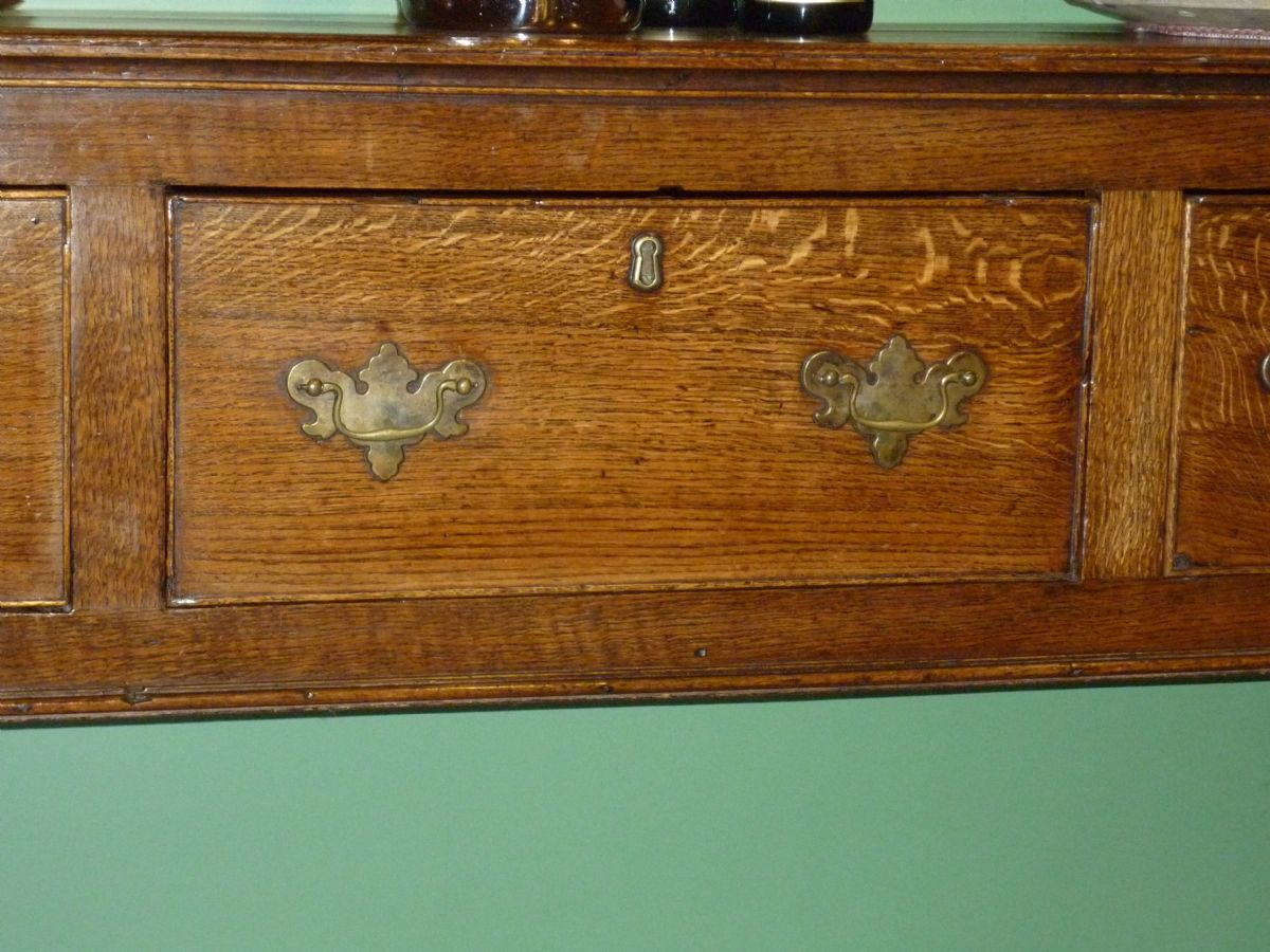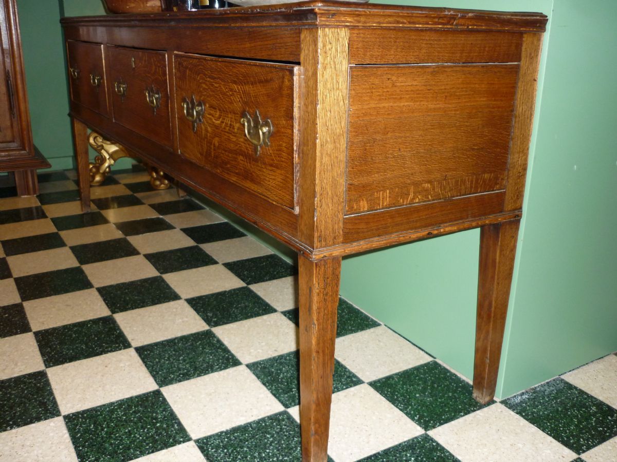 Dressoir anglais en chêne, avec un plateau mouluré et 3 tiroirs, les pieds en gaine.